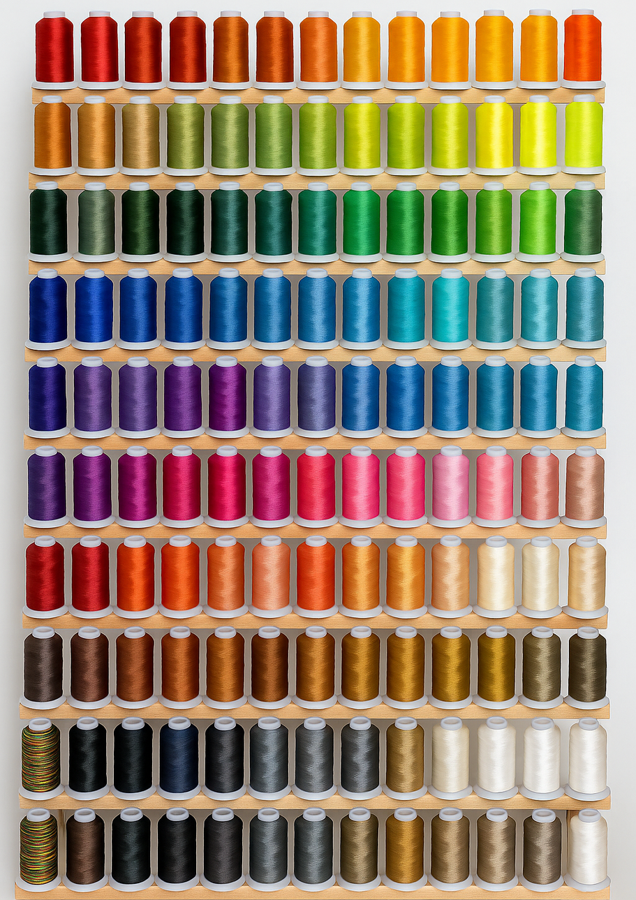 für unsere Stickarbeiten verwenden wir ausschließlich hochwertige 40 WT Polyester-Garne, die durch ihre hohe Reißfestigkeit, Farbechtheit und Langlebigkeit überzeugen.